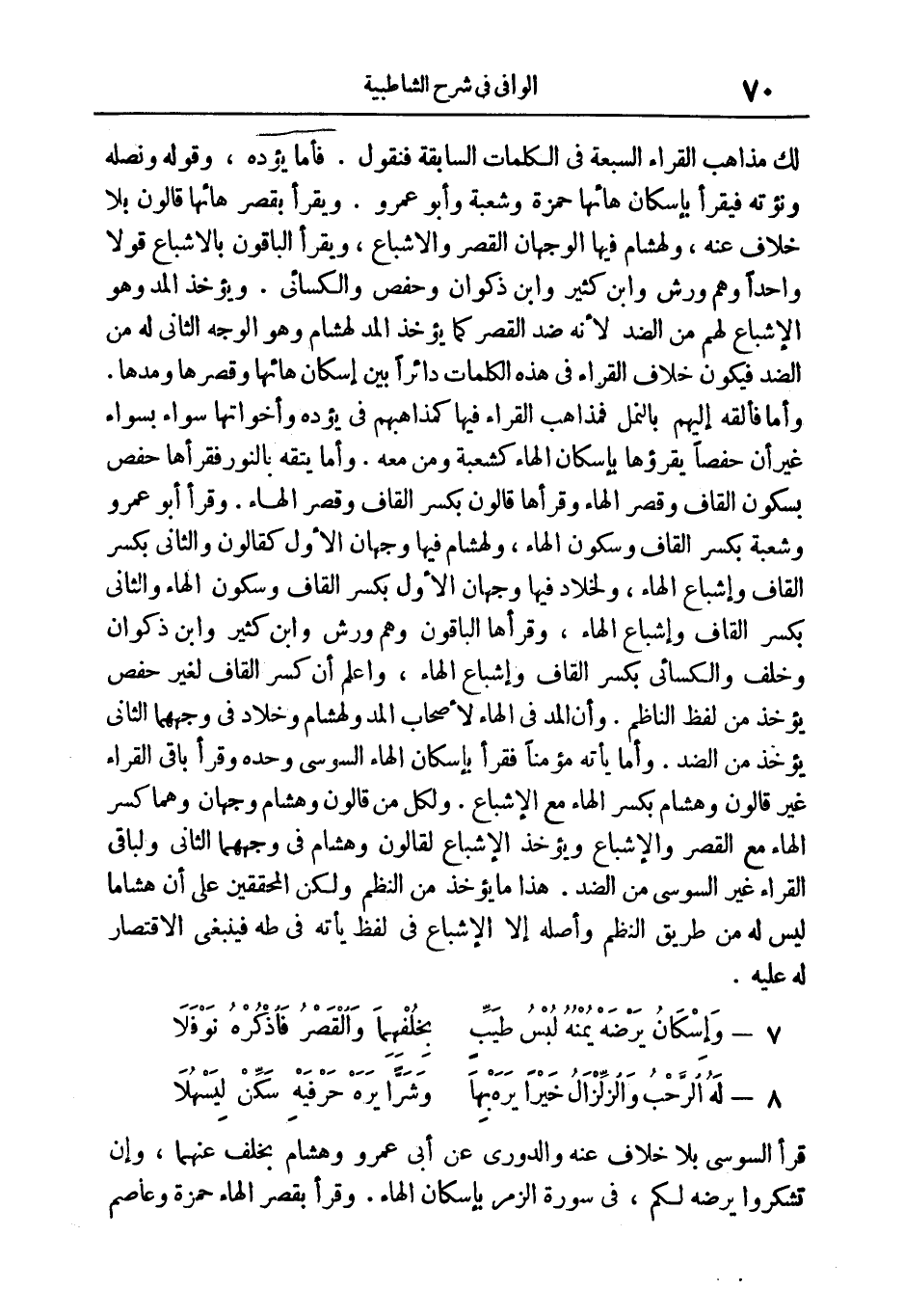 المعنى: قرأ السوسي بلا خلاف عنه، والدوري عن أبي عمرو وهشام بخلف عنهما، وَإِنْ تَشْكُرُوا يَرْضَهُ لَكُمْ، في سورة الزمر بإسكان الهاء. وقرأ بقصر الهاء: حمزة، وعاصم،