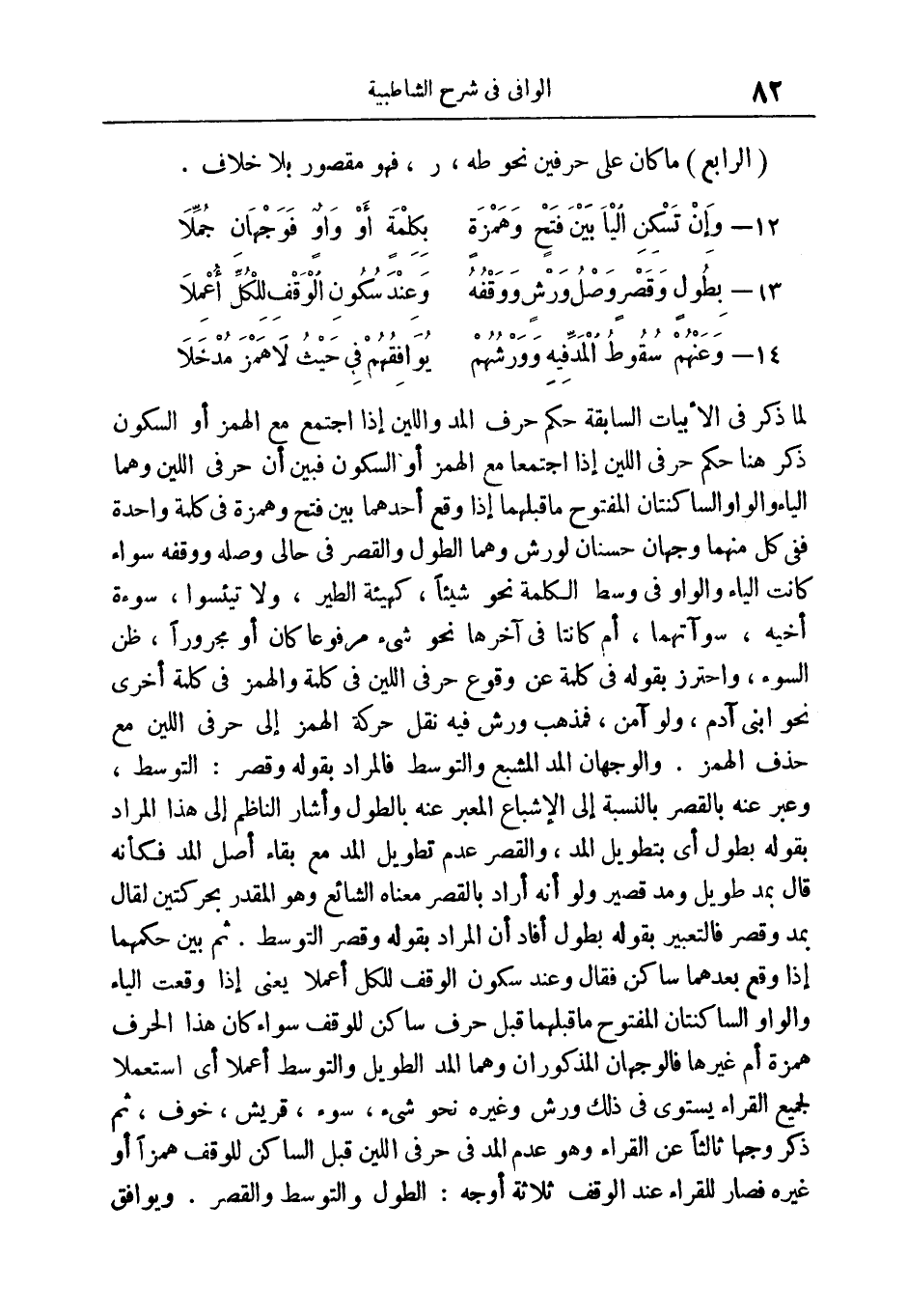 180 - بطول وقصر وصل ورش ووقفه ... وعند سكون الوقف للكلّ أعملا