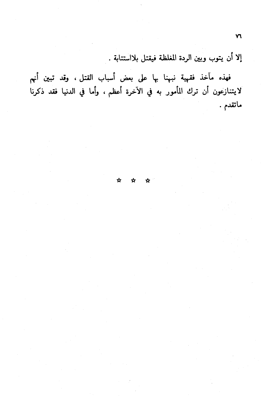 فهذه مآخذ فقهية نبهنا بها على بعض أسباب القتل, وقد تبين أنهم لا يتنازعون أن ترك المأمور به في الآخرة أعظم, وأما في الدنيا فقد ذكرنا ما تقدم.