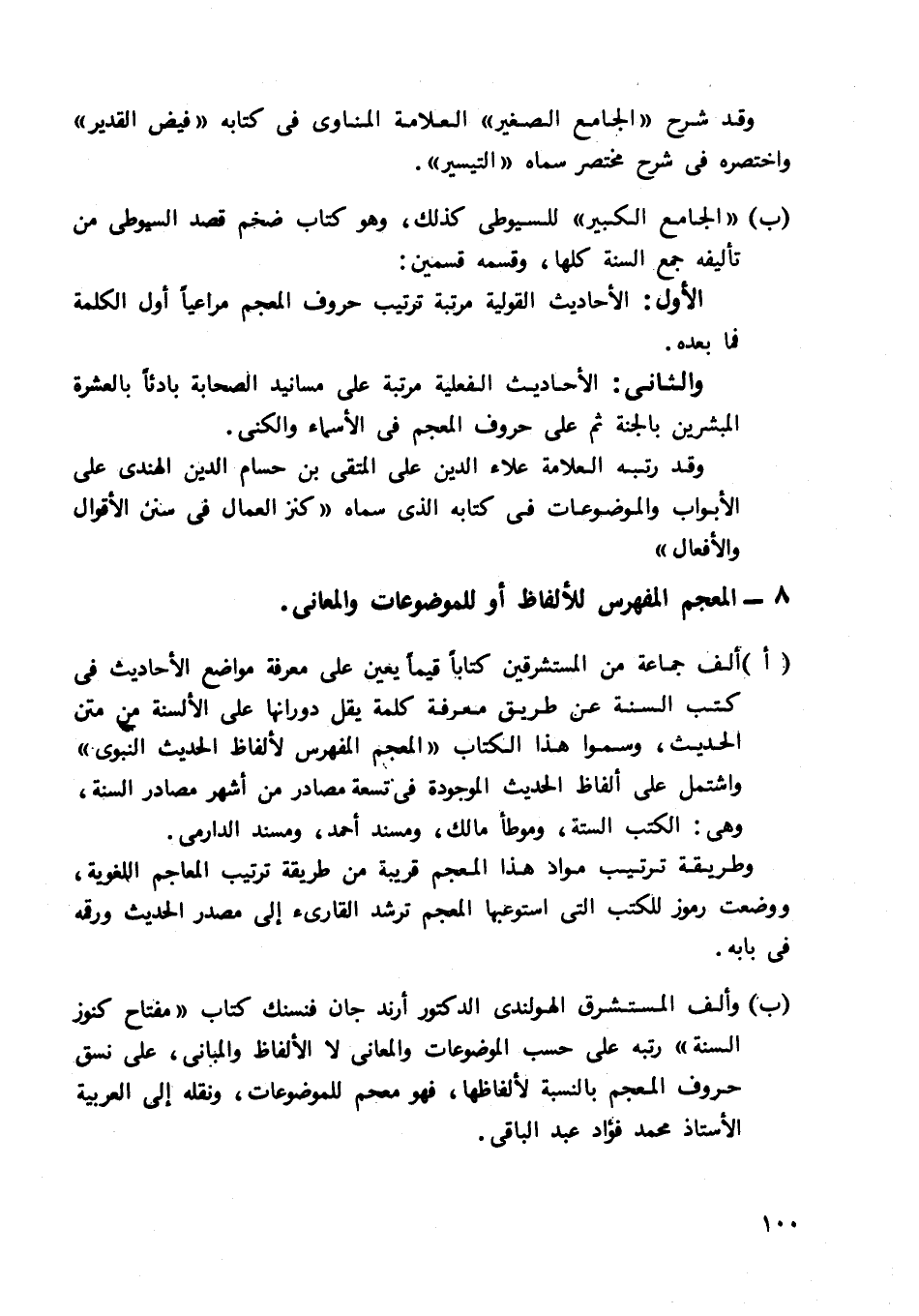 "أ" ألف جماعة من المستشرقين كتابا قيما يعين على معرفة مواضع الأحاديث في كتب السنة عن طريق معرفة كلمة يقل دورانها على الألسنة من متن الحديث، وسموا هذه الكتاب "المعجم المفهرس لألفاظ الحديث النبوي" واشتمل على ألفاظ الحديث الموجودة في تسعة مصادر من أشهر مصادر السنة، وهي: الكتب الستة، وموطأ مالك، ومسند أحمد، ومسند الدارمي.