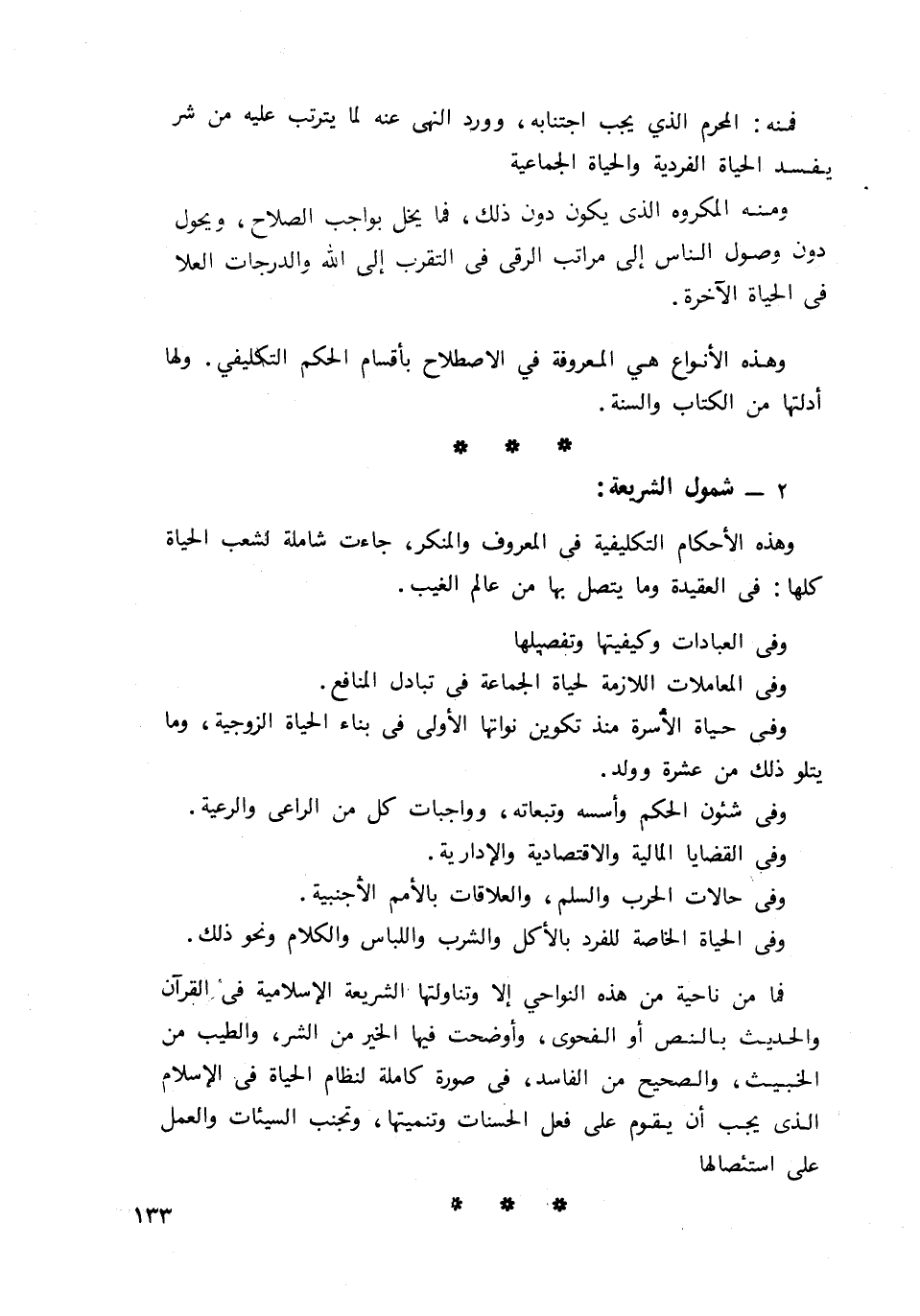 وهذه الأحكام التكليف في المعروف والمنكر، جاءت شاملة لشعب الحياة كلها، في العقيدة وما يتصل بها من عالم الغيب.