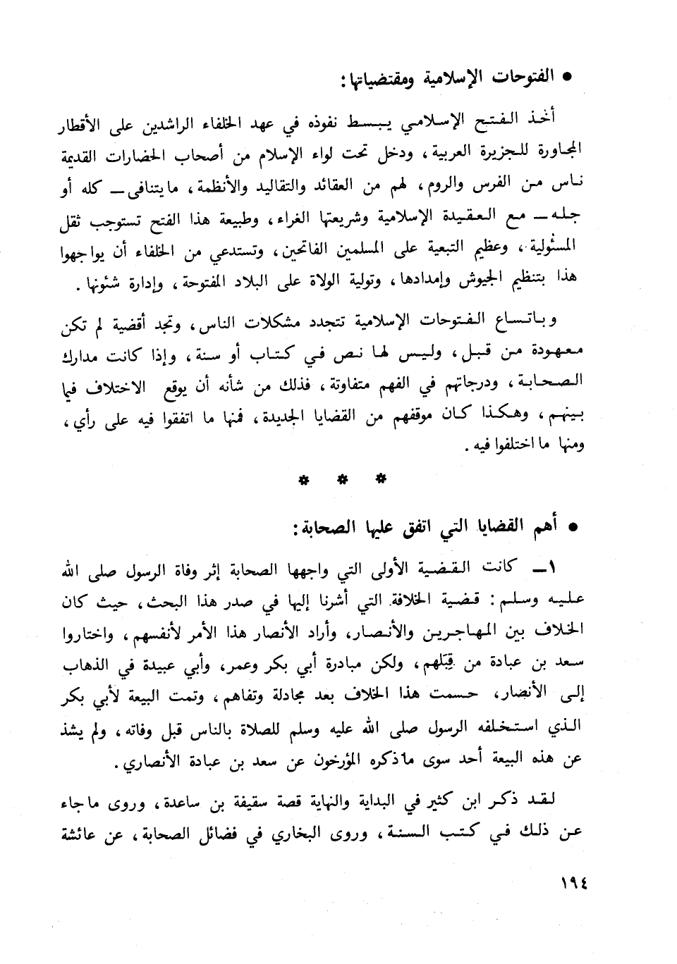أخذ الفتح الإسلامي يبسط نفوذه في عهد الخلفاء الراشدين على الأقطار المجاورة للجزيرة العربية، ودخل تحت لواء الإسلام من أصحاب الحضارات القديمة ناس من الفرس والروم، لهم من العقائد والتقاليد والأنظمة، ما يتنافى - كله أو جله مع العقيدة الإسلامية وشريعتها الغراء، وطبيعة هذا الفتح تستوجب ثل المسئولية، وعظيم التبعية على المسلمين الفاتحين، وتستدعي من الخلفاء أن يواجهوا هذا بتنظيم الجيوش وإمدادها، وتولية الولاة على البلاد المفتوحة، وإدارة شئونها.