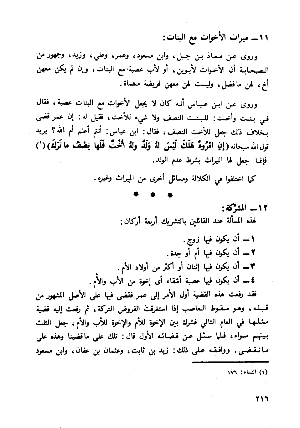 4 أن يكون فيها عصبة أشقاء أي إخوة من الأب والأم.