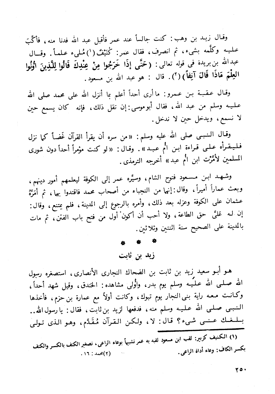 1 الكنيف كزبير: لقب ابن مسعود لقبه به عمر تشبيها بوعاء الراعي، تصغير الكنف بالكسر والكنف بكسر الكاف: وعاء أداة الراعي.