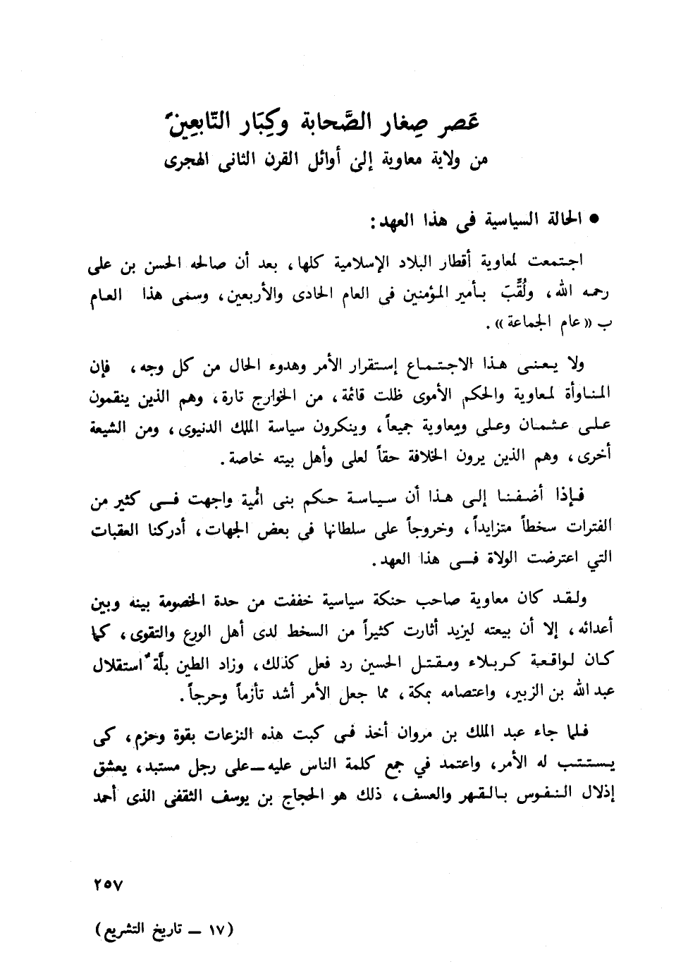من ولاية معاوية إلى أوائل القرن الثاني الهجري