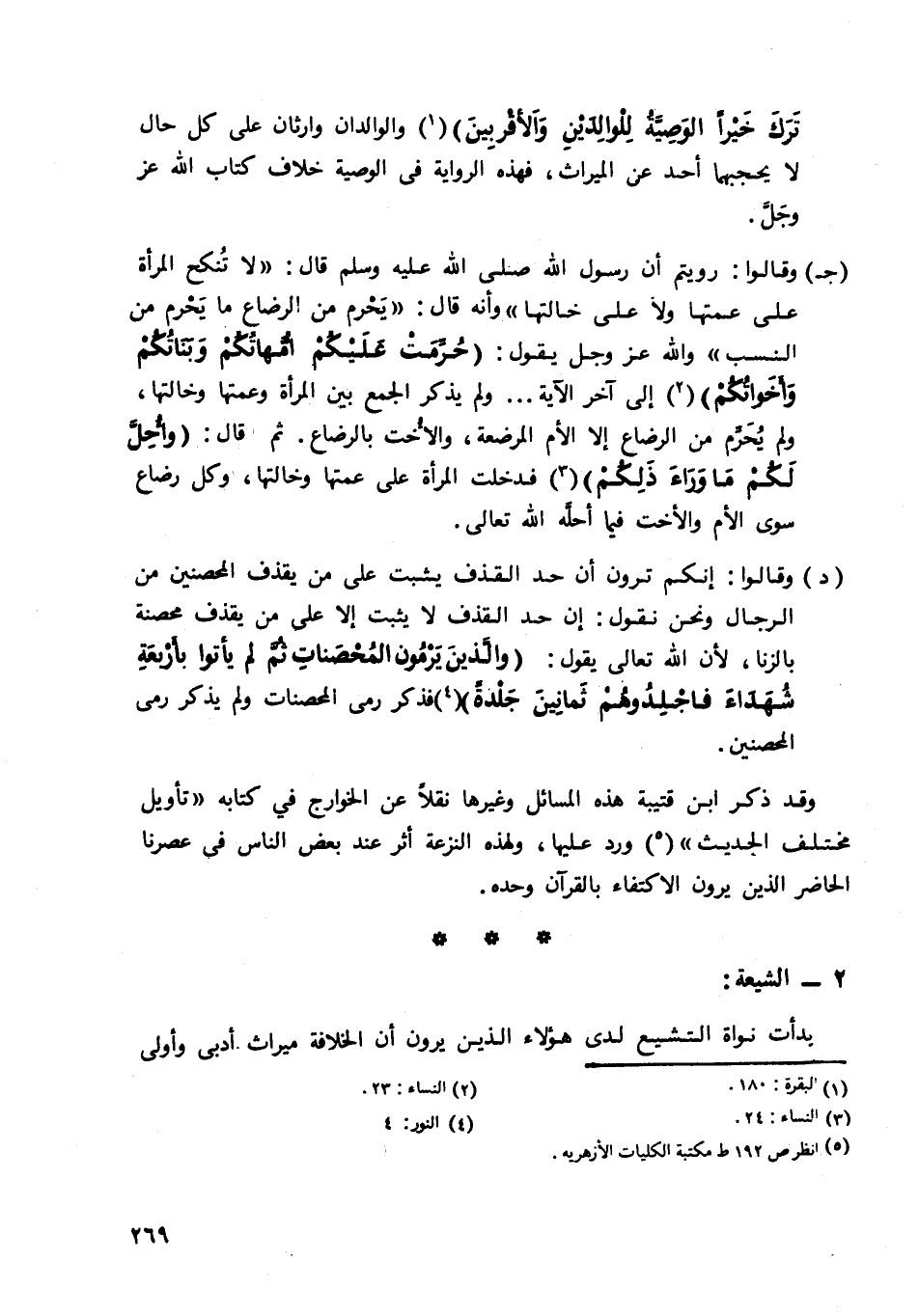 وقد ذكر ابن قتيبة هذه المسائل وغيرها نقلا عن الخوارج في كتابه "تأويل مختلف الحديث"5 ورد عليها، ولهذه النزعة أثر عند بعض الناس في عصرنا الحاضر الذين يرون الاكتفاء بالقرآن وحده.