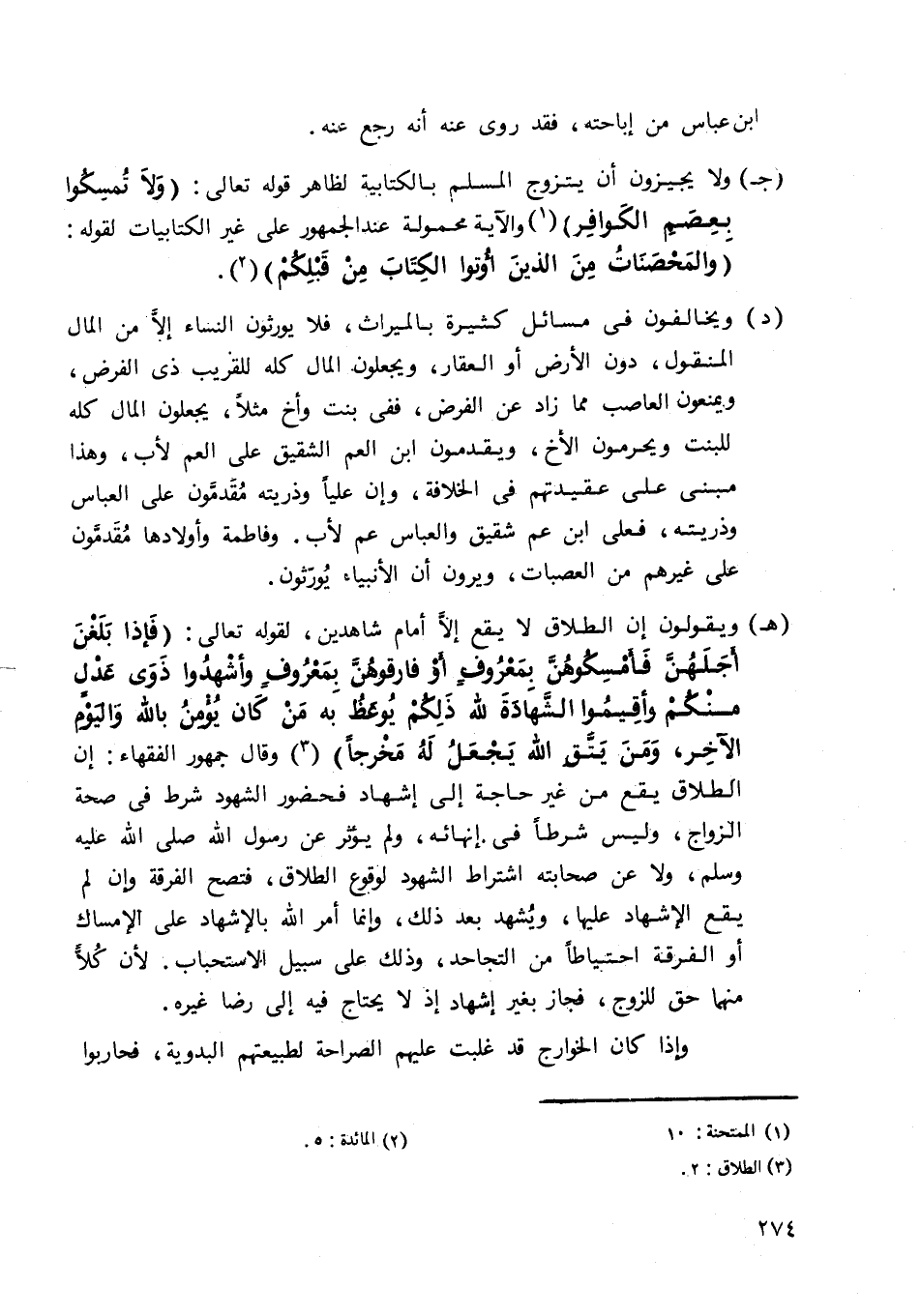 جـ- ولا يجيزون أن يتزوج المسلم بالكتابية الظاهر قوله تعالى: {وَلا تُمْسِكُوا بِعِصَمِ الْكَوَافِر} 1 والآية محمولة عند الجمهور على غير الكتابيات لقوله: {وَالْمُحْصَنَاتُ مِنَ الَّذِينَ أُوتُوا الْكِتَابَ مِنْ قَبْلِكُمْ} 2.