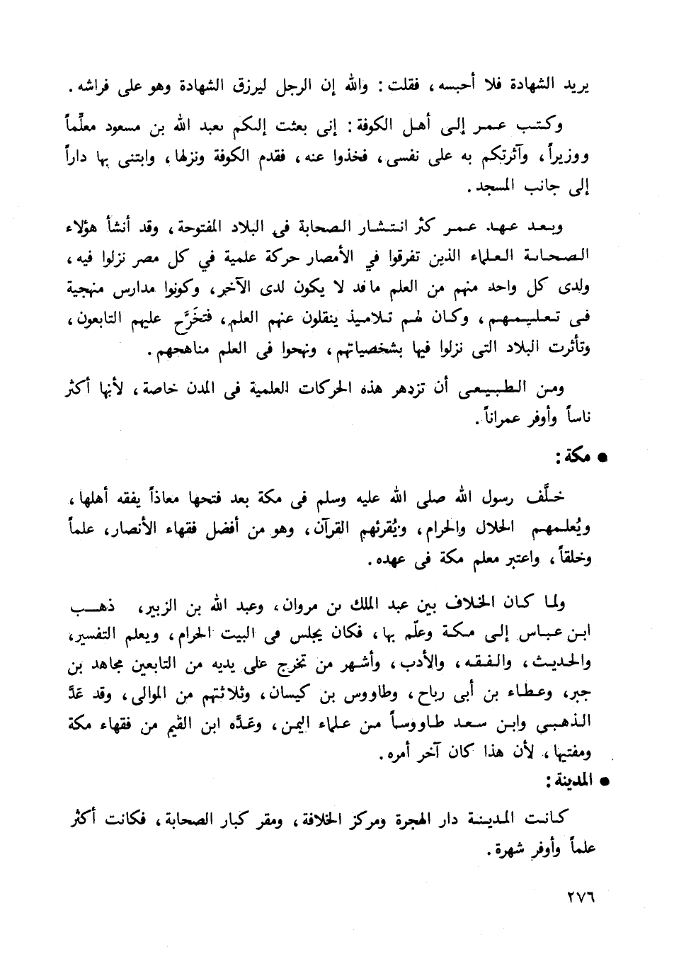 وبعد عهد عمر كثر انتشار الصحابة في البلاد المفتوحة، وقد أنشأ هؤلاء الصحابة العلماء الذين تفرقوا في الأمصار حركة علمية في كل مصر نزلوا فيه، ولدى كل واحد منهم من العلم ما قد لا يكون لدى الآخر، وكونوا مدارس منهجية في تعليمهم، وكان لهم تلاميذ ينقلون عنهم العلم، فتخرج عليهم التابعون، وتأثرت البلاد التي نزلوا فيها بشخصياتهم، ونهجوا في العلم مناهجهم.