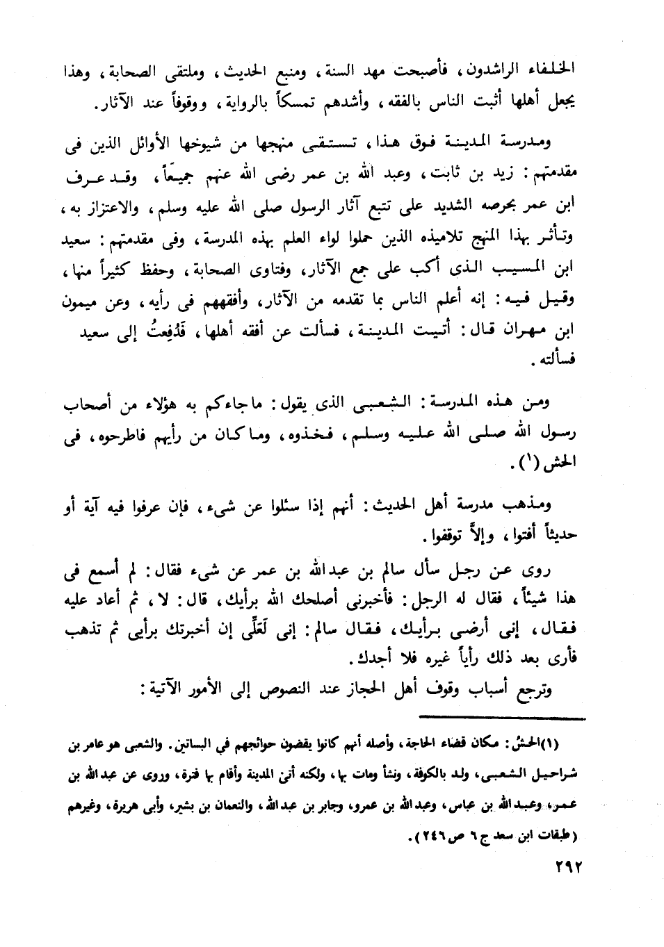 ومن هذه المدرسة: الشعبي الذي يقول: ما جاءكم به هؤلاء من أصحاب رسول الله صلى الله عليه وسلم، فخذوه وما كان من رأيهم فاطرحوه، في الحش1.
