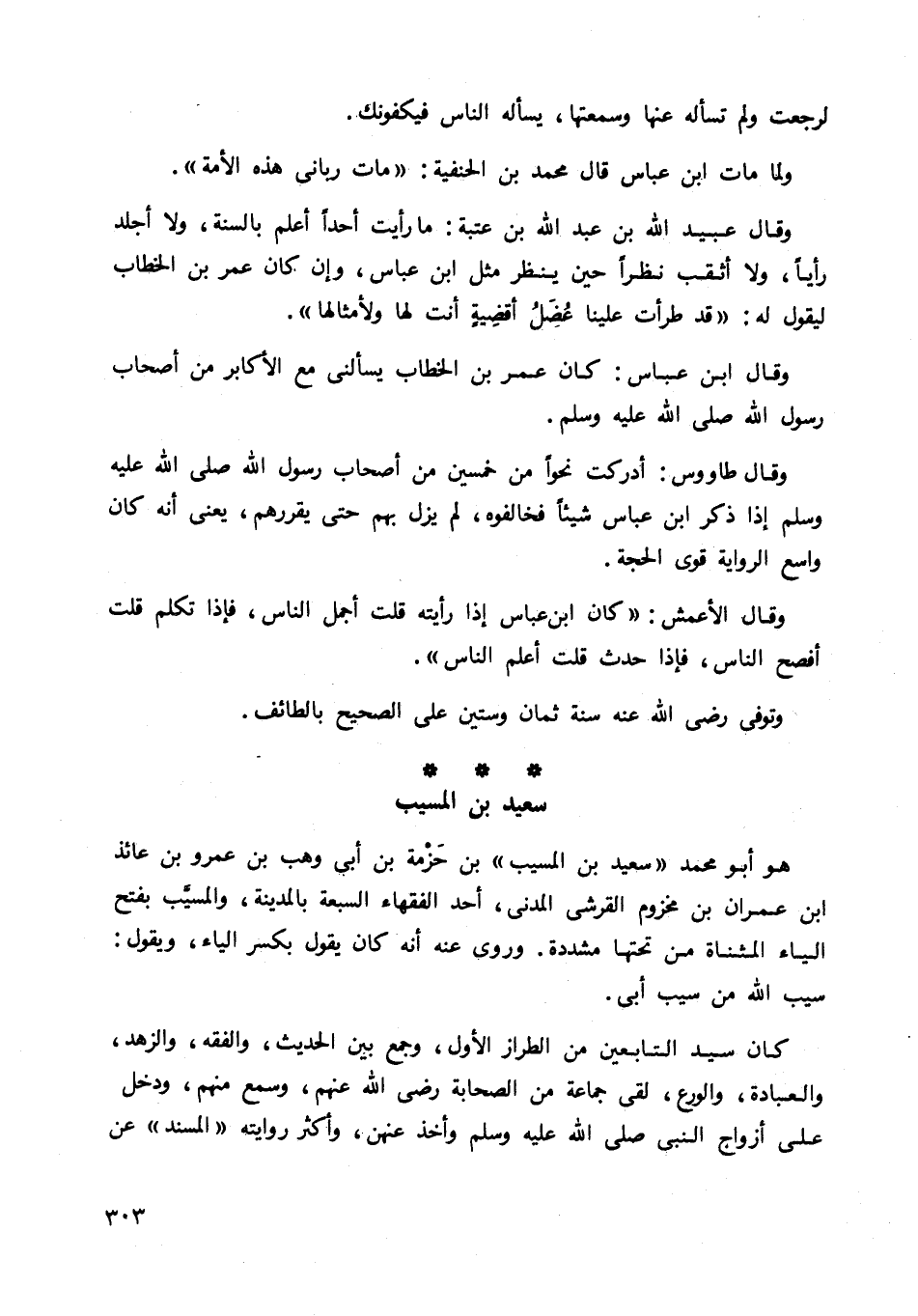 ولما مات ابن عباس قال محمد بن الحنفية: "مات رباني هذه الأمة".