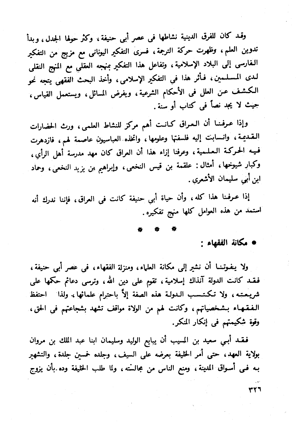 إذا عرفنا هذا كله، وأن حياة أبي حنيفة كانت في العراق؛ فإننا ندرك أنه استمد من من هذه العوامل كلها منهج تفكيره.