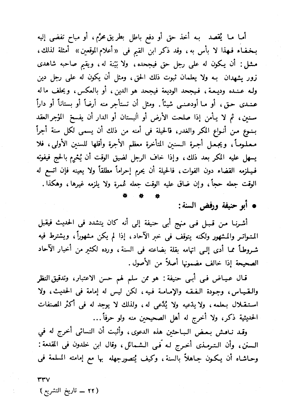 أما ما يقصد به أخذ حق أو دفع باطل بطريق محرم، أو مباح تفضي إليه بخفاء فهذا لا بأس به، وقد ذكر ابن القيم في "إعلام الموقعين"، أمثلة لذلك، مثل: أن يكون له على رجل حق فيجحده، ولا بينة له، ويقيم صاحبه شاهدي زور يشهدان به ولا يعلمان ثبوت ذلك الحق، ومثل أن يكون له على رجل دين وله عنده وديعة، فيجحد الوديعة فيجحد هو الدين، أو بالعكس، ويحلف ما له عندي حق، أو ما أودعني شيئا. ومثل أن تستأجر منه أرضا أو بستانا أو دارا سنين، ثم لا يأمن إذا صلحت الأرض أو البستان أو الدار أن يفسخ المؤجر العقد بنوع من أنواع المكر والغدر، فالحيلة في أمنه من ذلك أن يسمى لكل سنة أجرا معلوما، ويجعل أجرة السنين المتأخرة معظم الأجرة وأقلها للسنين الأولى، فلا يسهل عليه المكر بعد ذلك، وإذا خاف الرجل لضيق الوقت أن يحرم بالحج فيفوته فيلزمه القضاء دون الفوات، فالحيلة أن يحرم إحراما مطلقا ولا يعينه فإن اتسع له الوقت جعله حجا، وإن ضاق عليه الوقت جعله عمرة ولا يلزمه غيرها، وهكذا.