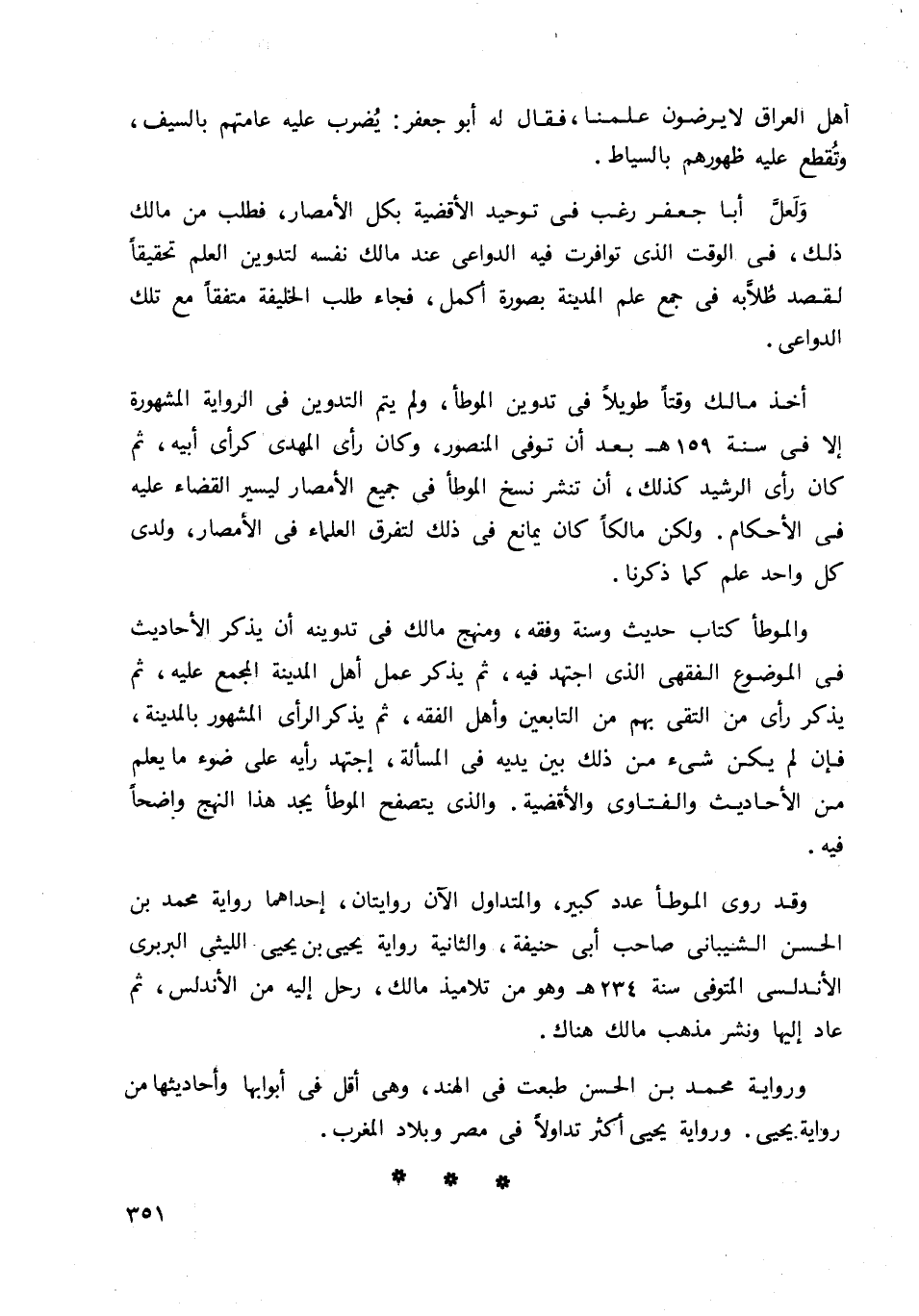 وقد روى الموطأ عدد كبير، والمتداول الآن روايتان، إحداهما رواية محمد بن الحسن الشيباني صاحب أبي حنيفة، والثانية رواية يحيى بن يحيى الليثي البربري الأندلسي المتوفى سنة 234هـ وهو من تلاميذ مالك، رحل إليه من الأندلس، ثم عاد إليها ونشر مذهب مالك هناك.