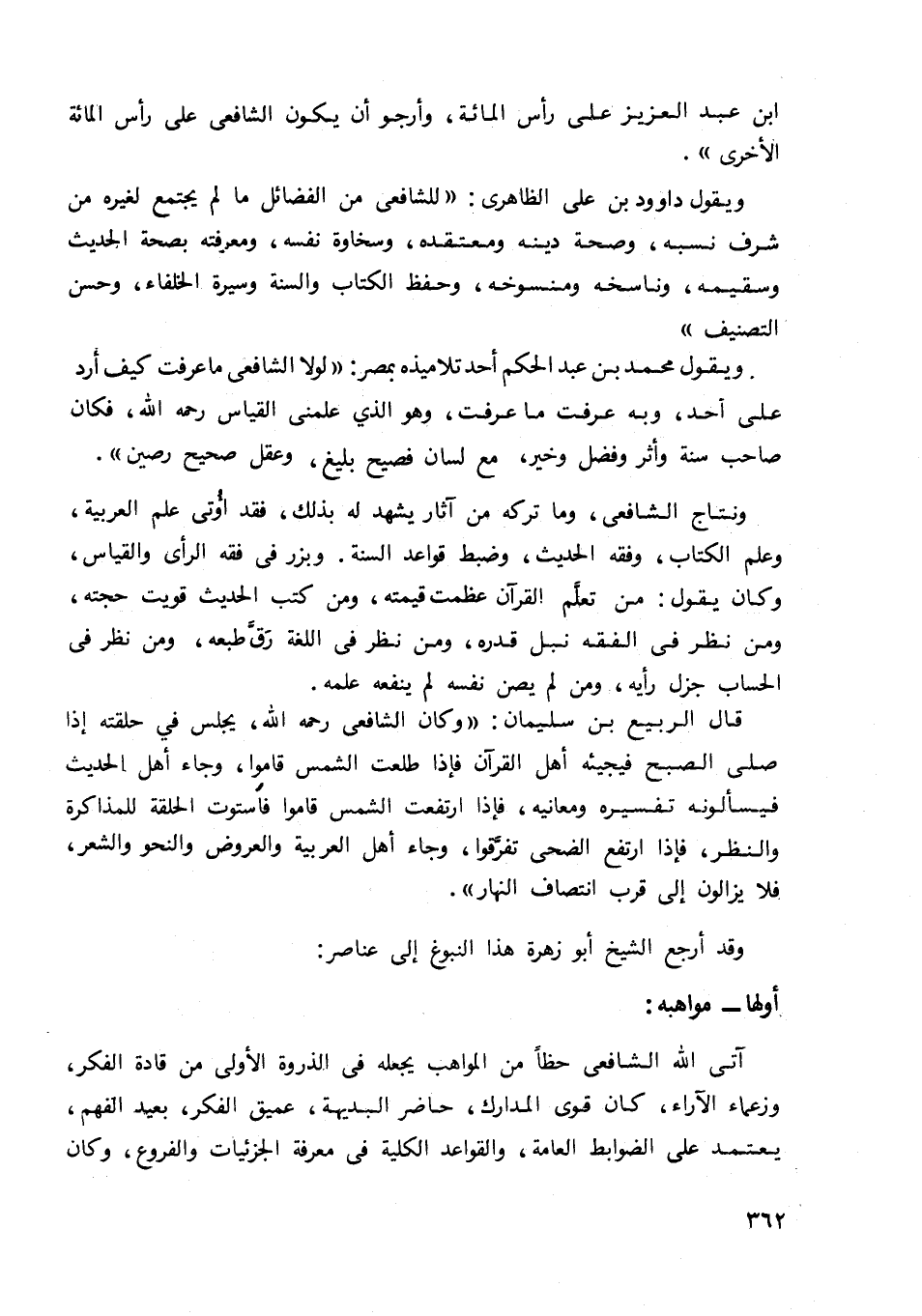 وقد أرجع الشيخ أبو زهرة هذا النبوغ إلى عناصر: