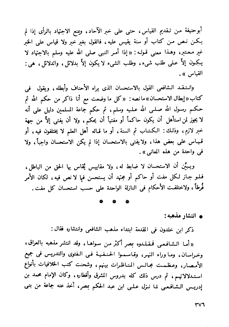 ذكر ابن خلدون في المقدمة ابتداء مذهب الشافعي وانتشاره فقال: