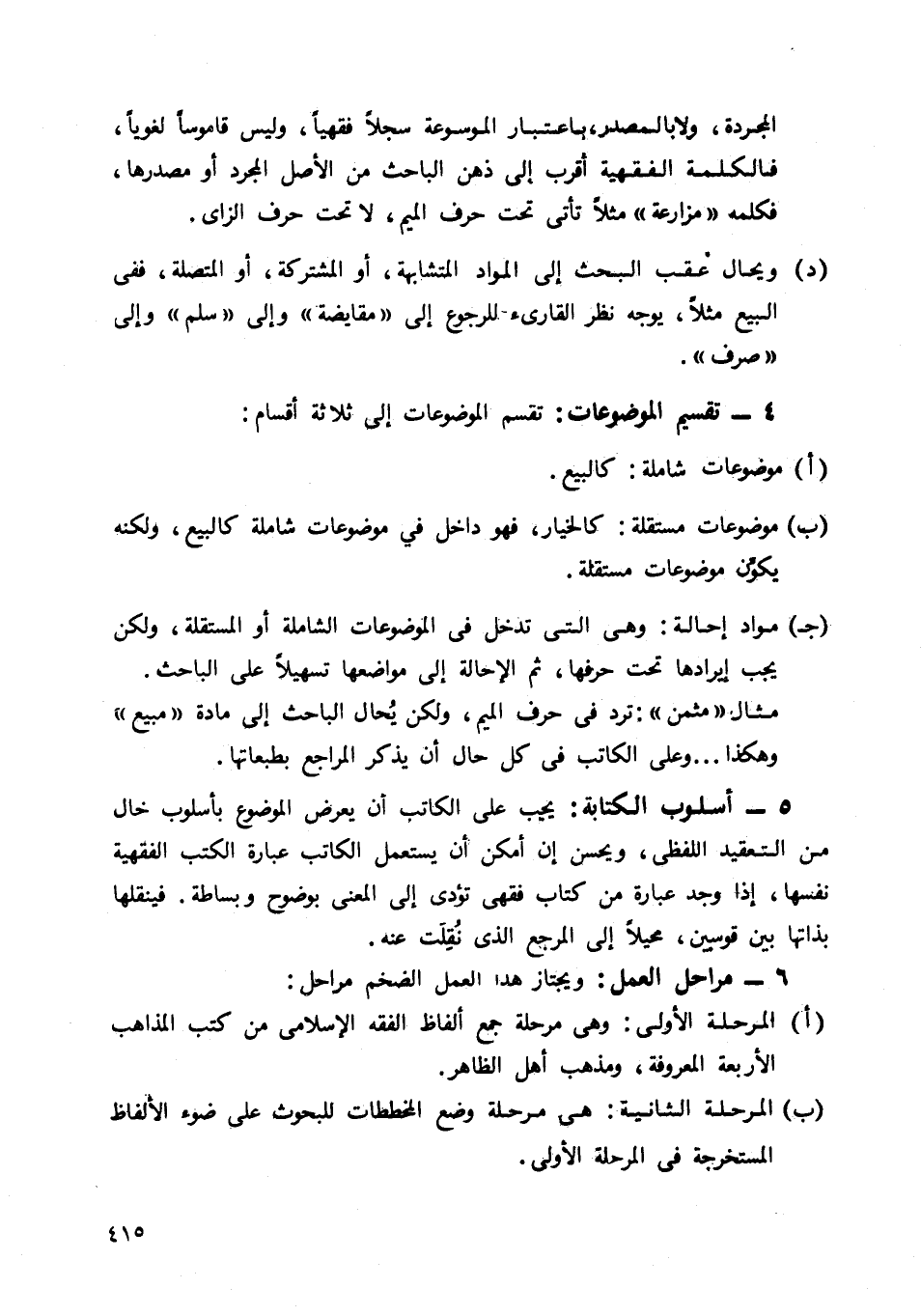 د- ويحال عقب البحث إلى المواد المتشابهة، أو المشتركة، أو المتصلة؛ ففي البيع مثلا، يوجه نظر القارئ للرجوع إلى "مقايضة" وإلى "سلم" وإلى "صرف".