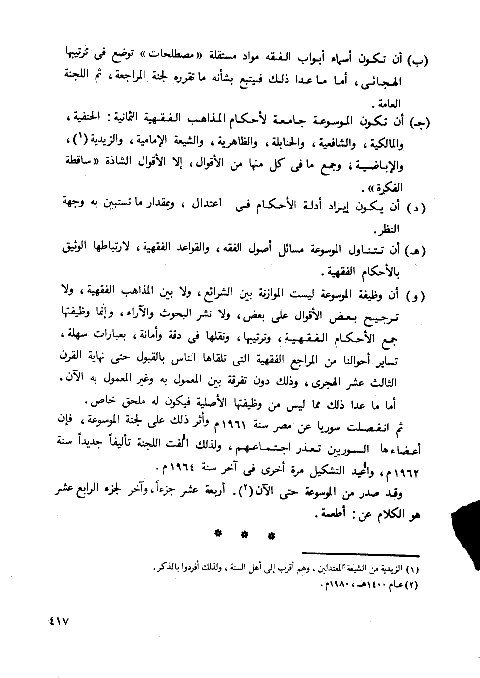 ب- أن تكون أسماء أبواب الفقه مواد مستقلة "مصطلحات" توضع في ترتيبها الهجائي، أما ما عدا ذلك فيتبع بشأنه ما تقرره لجنة المراجعة، ثم اللجنة العامة.