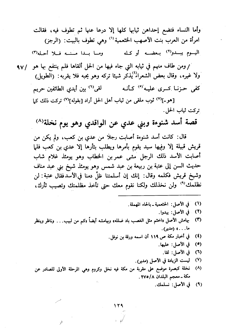 قصة أسد شنوءة وبني عدي عن الواقدي وهو يوم نخلة [8]
