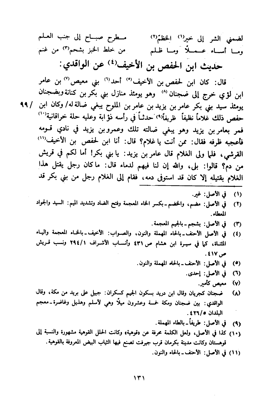 حديث ابن الحفص بن الأخيف [4] عن الواقدي:
