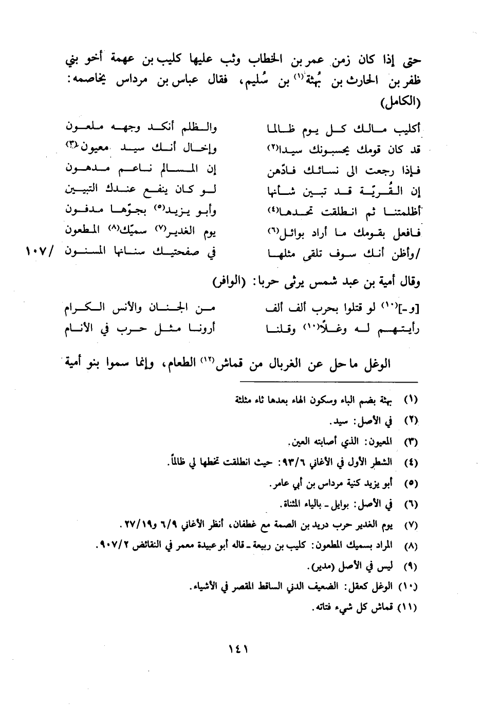 [8] المراد بسميك المطعون: كليب بن ربيعة- قاله أبو عبيدة معمر في النقائض 2/ 907.