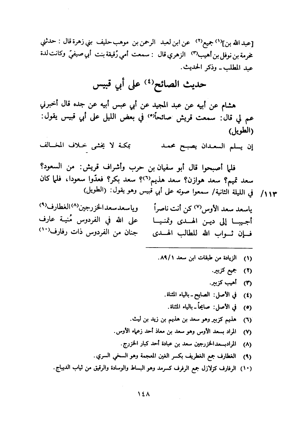 [8] المراد بسعد الخزرجين سعد بن عبادة أحد كبار الخزرج.