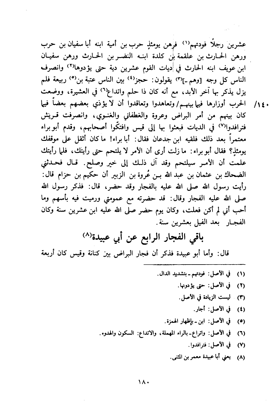 باقي الفجار الرابع عن أبي عبيدة [8]