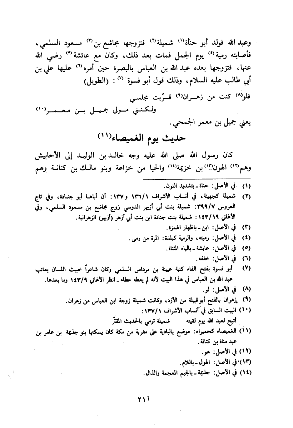 [11] الغميصاء كحميراء: موضع بالبادية على مقربة من مكة كان يسكنها بنو جذيمة بن عامر بن عبد مناة بن كنانة.