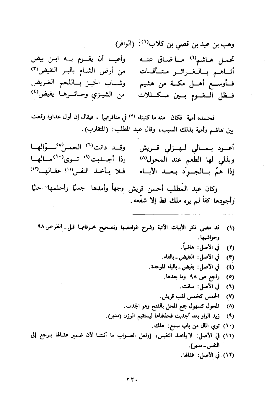 فحسده أمية فكان منه ما كتبناه [5] في منافرتهما، فيقال إن أول عداوة وقعت بين هاشم وأمية بذلك السبب، وقال عبد المطلب: (المتقارب) .