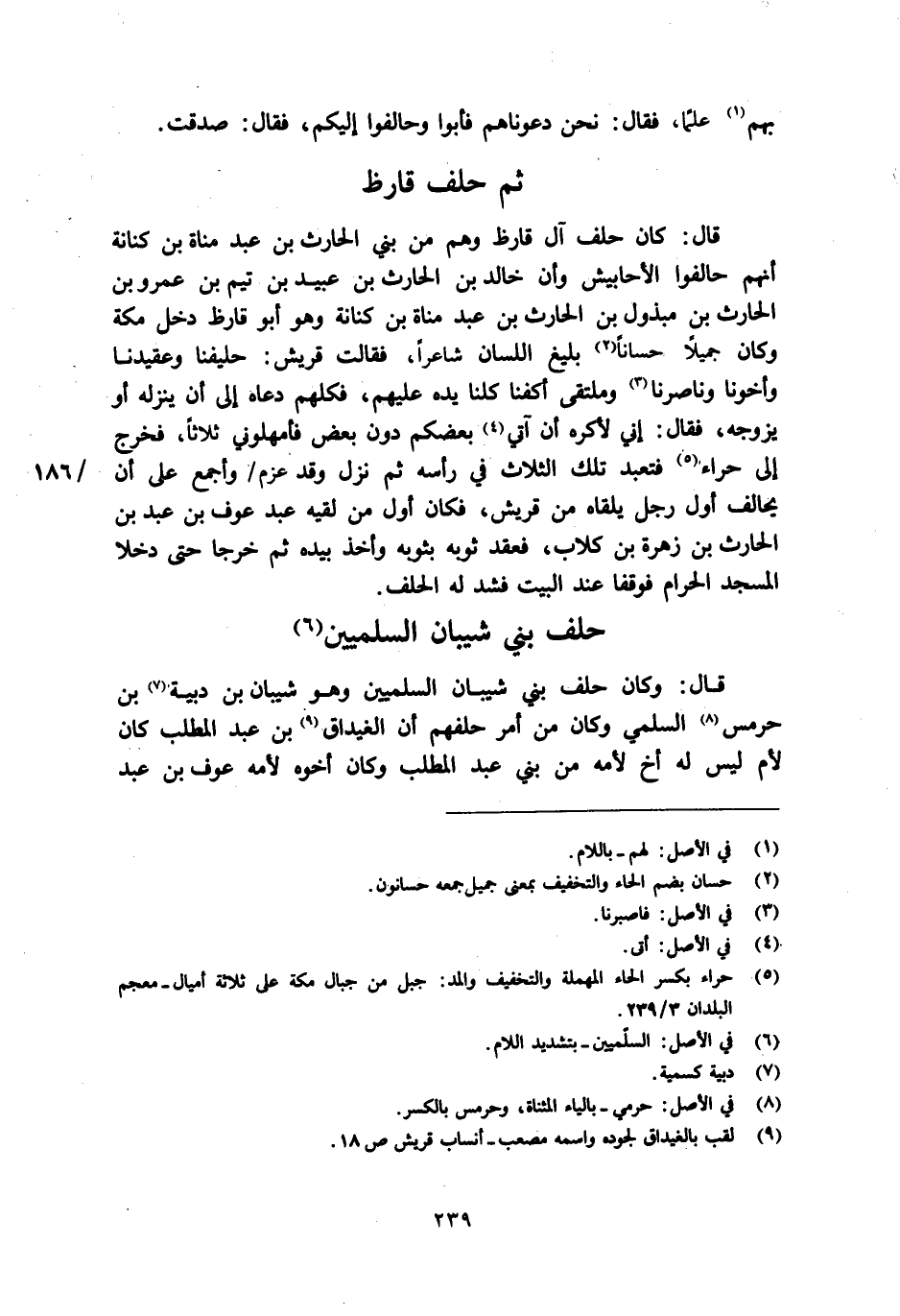 قال: وكان حلف بني شيبان السلميين وهو شيبان بن دبية [7] بن حرمس [8] السلمي وكان من أمر حلفهم أن الغيداق [9] بن عبد المطلب كان لأم ليس له أخ لأمه من بني عبد المطلب وكان أخوه لأمه عوف بن عبد