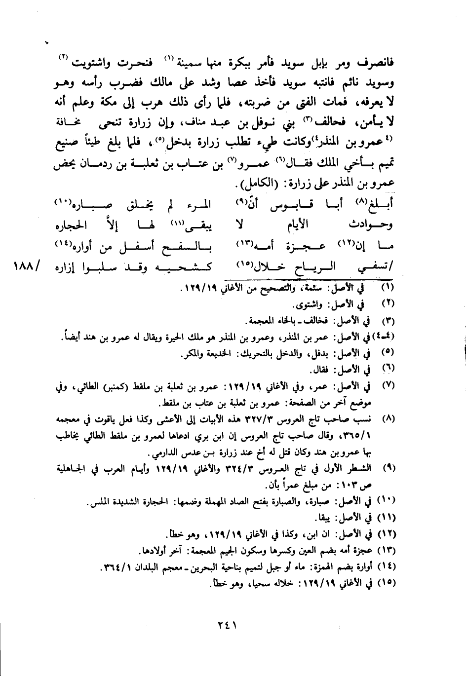 [4] في الأصل: عمر بن المنذر، وعمرو بن المنذر هو ملك الحيرة ويقال له عمرو بن هند أيضا.