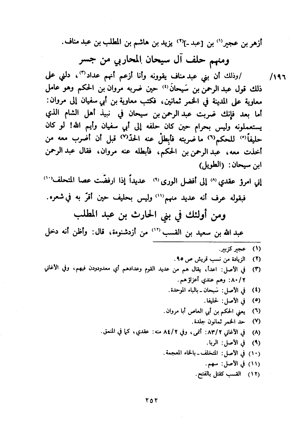 وذلك أن بني عبد مناف يقوونه وأنا أزعم أنهم عداد [3] ، دلني على ذلك قول عبد الرحمن بن سيحان [4] حين ضربه مروان بن الحكم وهو عامل معاوية على المدينة في الخمر ثمانين، فكتب معاوية بن أبي سفيان إلى مروان: