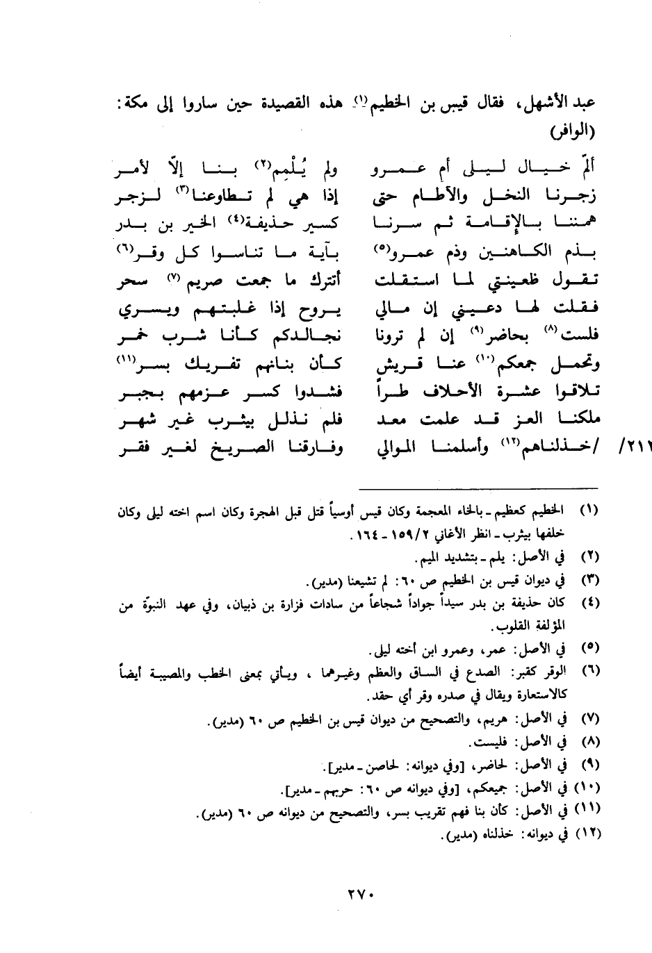 عبد الأشهل، فقال قيس بن الخطيم [1] هذه القصيدة حين ساروا إلى مكة: