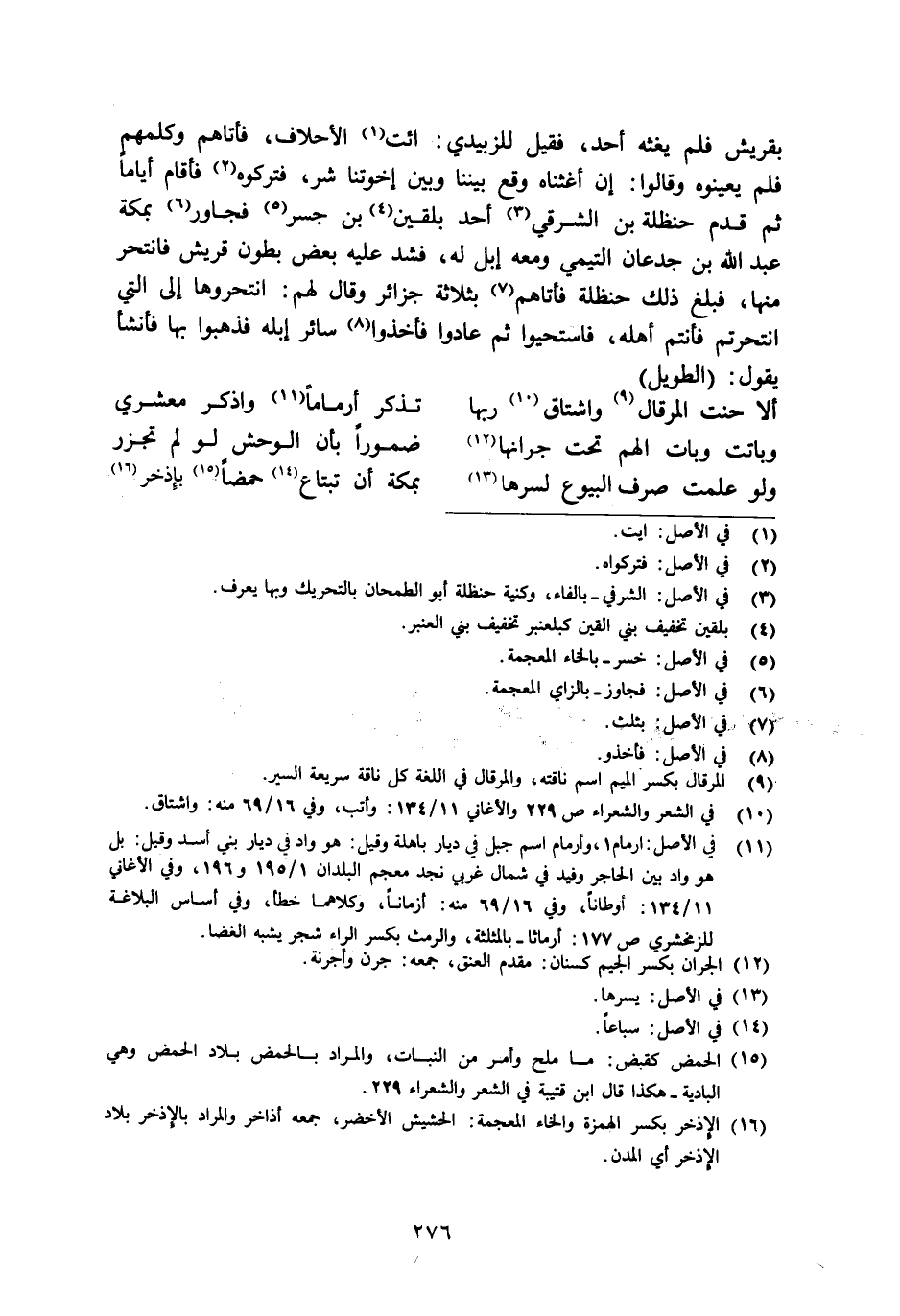[15] الحمض كقبض: ما ملح وأمر من النبات، والمراد بالحمض بلاد الحمض وهي البادية- هكذا قال ابن قتيبة في الشعر والشعراء 229.