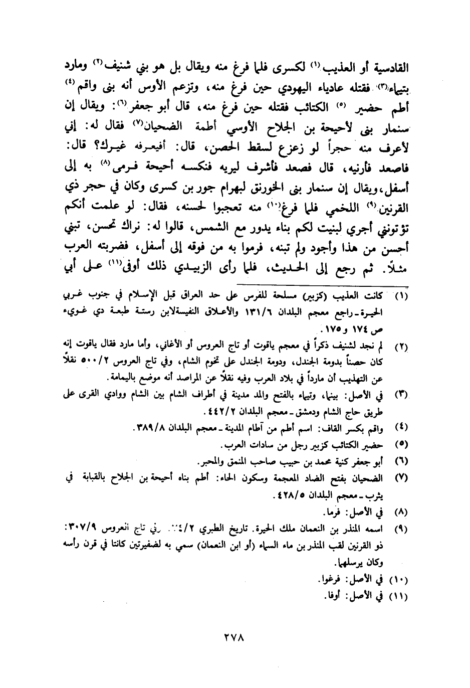 [9] اسمه المنذر بن النعمان ملك الحيرة. تاريخ الطبري 2/ 74 [؟] في تاج العروس 9/ 307: