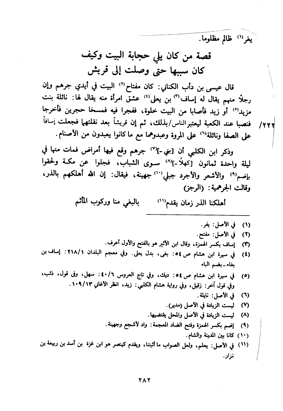 [4] في سيرة ابن هشام ص 54: بغى، بدل يعلى. وفي معجم البلدان 1/ 218: إساف بن بغاء- بضم الباء.