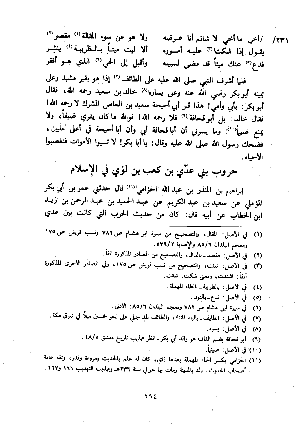 [1] في الأصل: المقال، والتصحيح من سيرة ابن هشام ص 782 ونسب قريش ص 175 ومعجم البلدان 6/ 85 والإصابة 2/ 539.