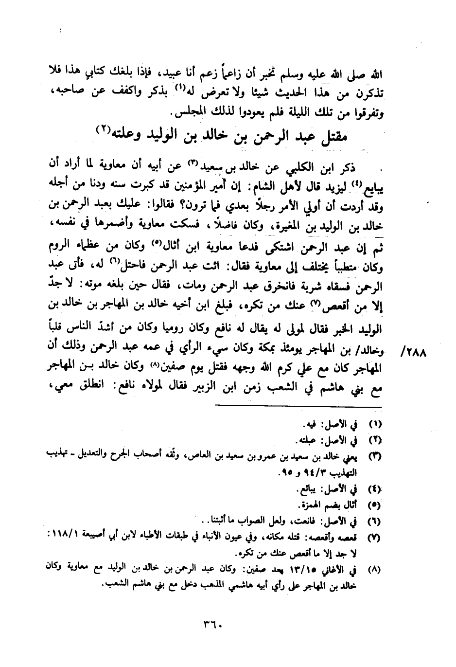 [8] في الأغاني 15/ 13 بعد صفين: وكان عبد الرحمن بن خالد بن الوليد مع معاوية وكان خالد بن المهاجر على رأي أبيه هاشمي المذهب دخل مع بني هاشم الشعب.
