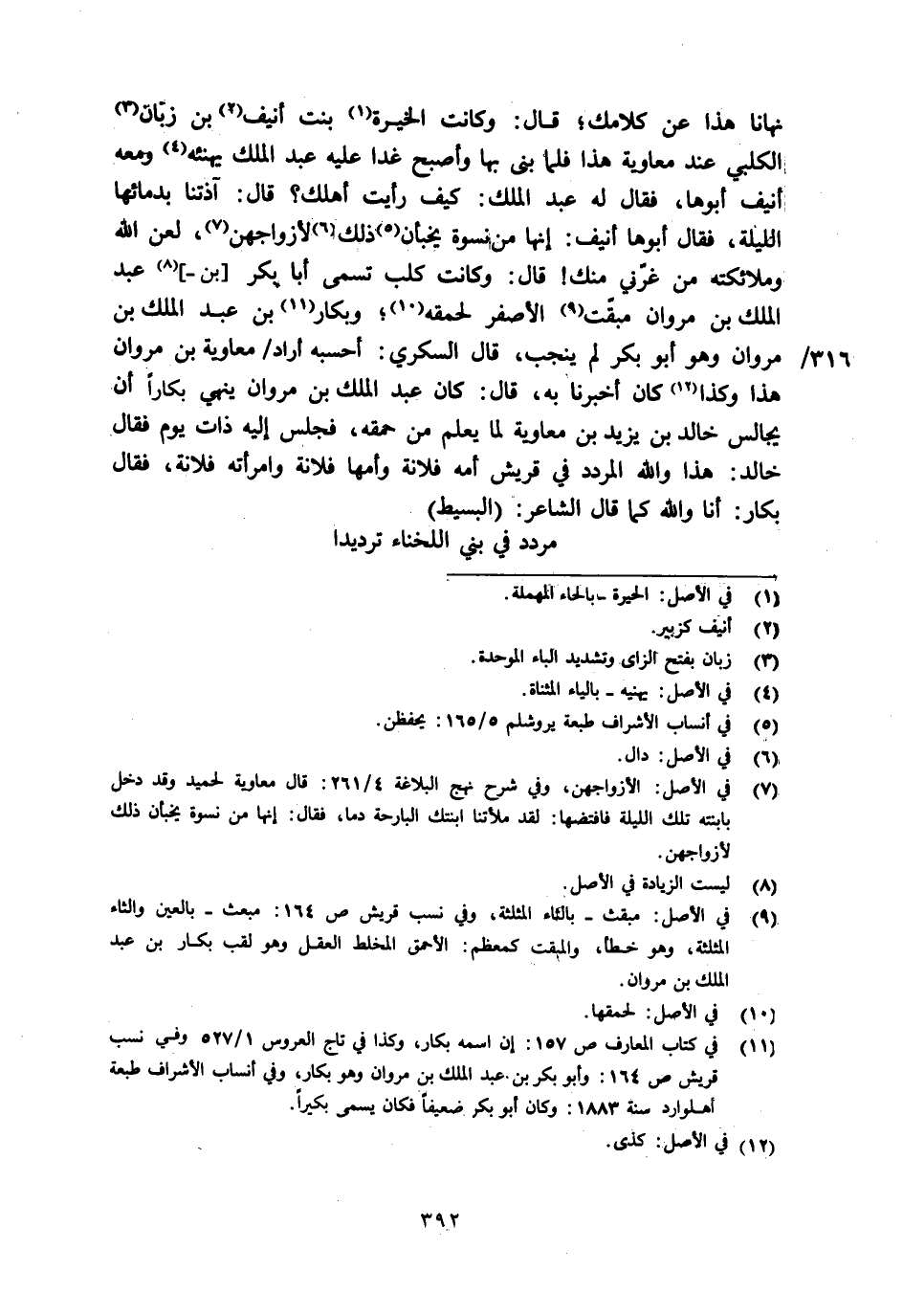 [11] في كتاب المعارف ص 157: إن اسمه بكار، وكذا في تاج العروس 1/ 527 وفي نسب قريش ص 164: وأبو بكر بن عبد الملك بن مروان وهو بكار، وفي أنساب الأشراف طبعة أهلوارد سنة 1883: وكان أبو بكر ضعيفا فكان يسمى بكيرا.