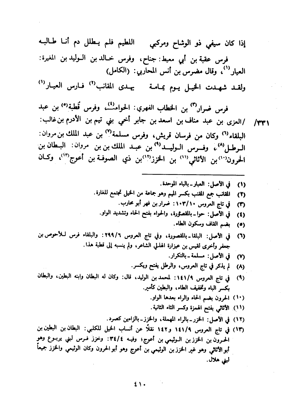 [13] في تاج العروس 9/ 141 و 142 نقلا عن أنساب الخيل للكلبي: البطان بن البطين بن الحرون بن الخزز بن الوثيمي بن أعوج، وفيه 4/ 34: وخزز فرس لبني يربوع وهو أبو الأثاثي وهو غير الخزز بن الوثيمي بن أعوج وهو أبو الحرون وكان الوثيمي والخزز جميعا لبني هلال.