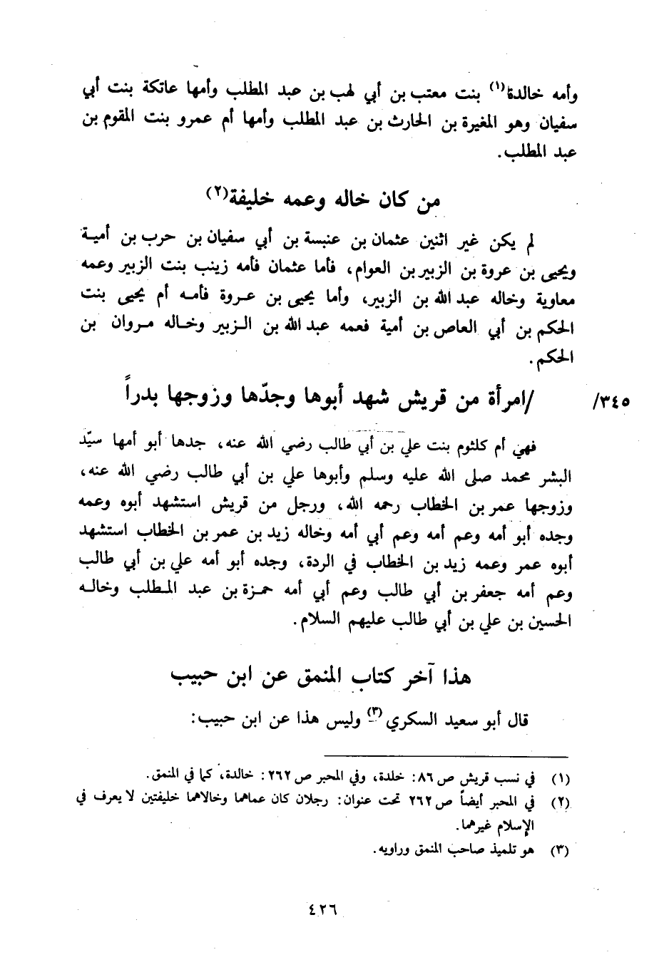. هذا آخر كتاب المنمق عن ابن حبيب قال أبو سعيد السكري [3] وليس هذا عن ابن حبيب: