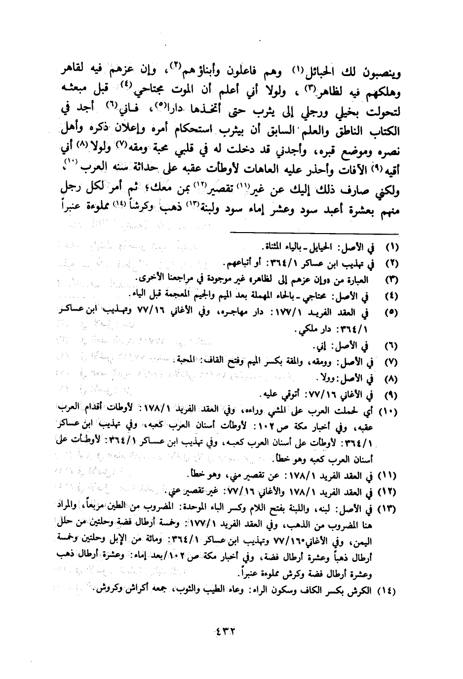 [10] أي لحملت العرب على المشي وراءه، وفي العقد الفريد 1/ 178: لأوطات أقدام العرب عقبه، وفي أخبار مكة ص 102: لأوطأت أسنان العرب كعبه، وفي تهذيب ابن عساكر 1/ 364: لأوطأت على أسنان العرب كعبه، وفي تهذيب ابن عساكر 1/ 364: لأوطأت على أسنان العرب كعبه وهو خطأ.