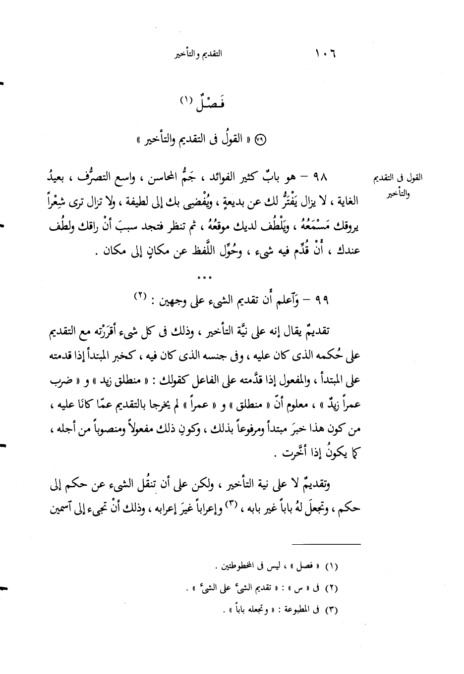 99 - واعلمْ أَنَّ تقديمَ الشيء على وجهينِ2: