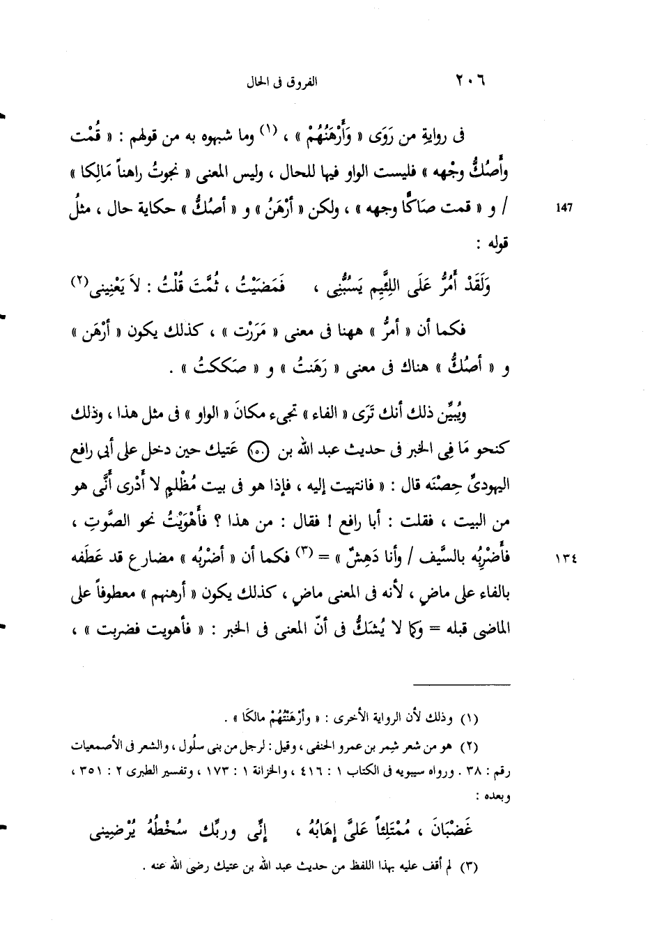 2 هو من شعر شيمر بن عمرو الحنفي، وقيل: لرجل من بني سلول، والشعر في الأصمعيات رقم: 38. رواه سيبويه في الكتاب 1: 416، والخزانة 1: 173، وتفسير الطبري 2: 351، وبعده: