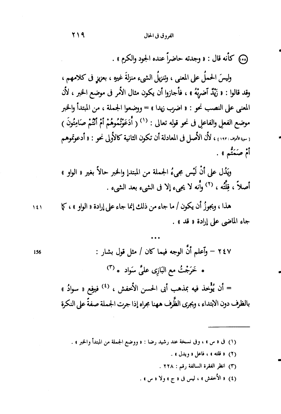 247 - واعلمْ أنَّ الوجْهَ فيما كان مثلَ قولِ بشار:
