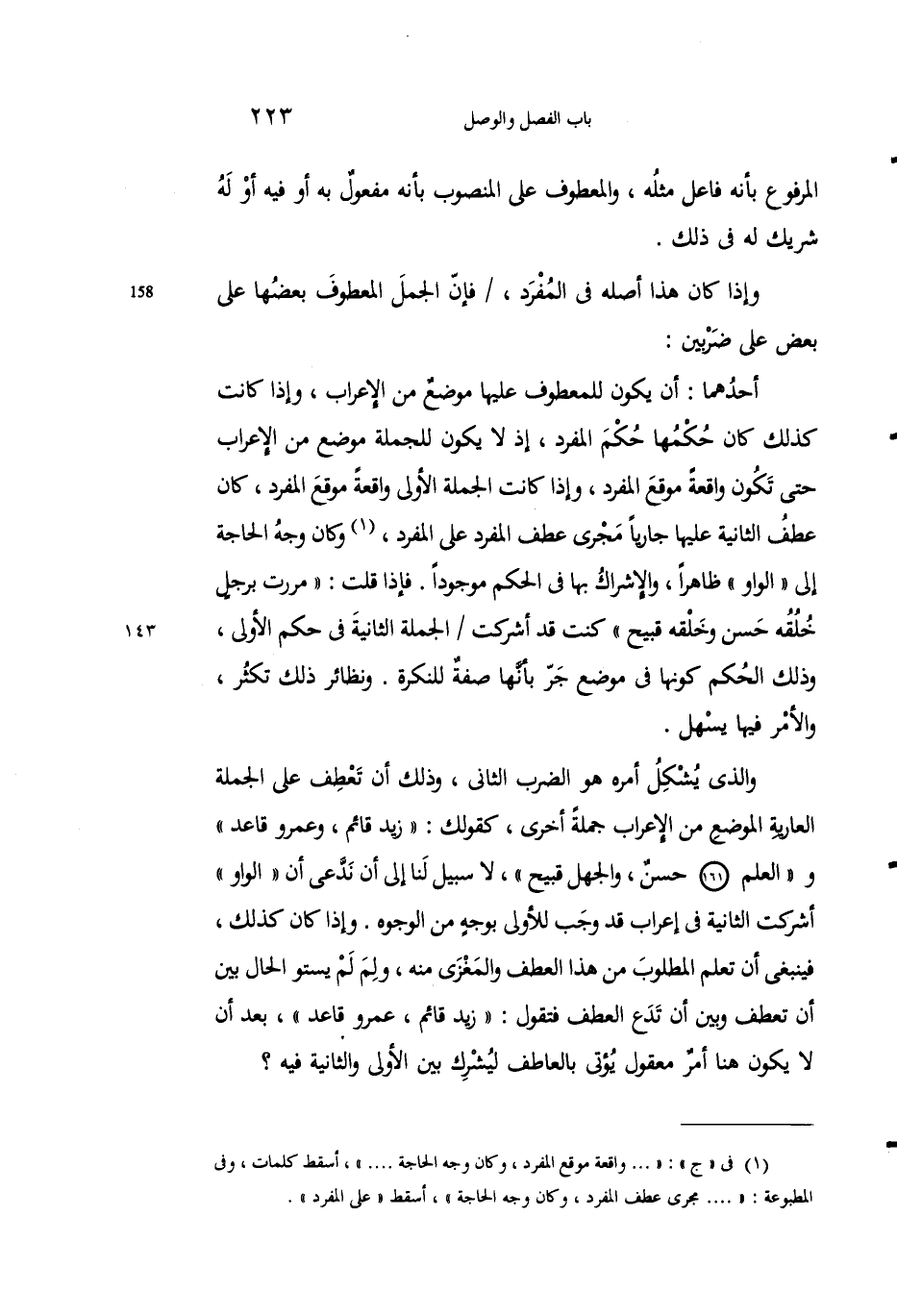 1 في "ج": " .... واقعة موقوع المفرد، وكان وجه الحاجة ... "، وأسقط كلمات، وفي المطبوعة: " .... مجرى عطف المفرد، وكان وجه الحاجة"، أسقط "على المفرد".