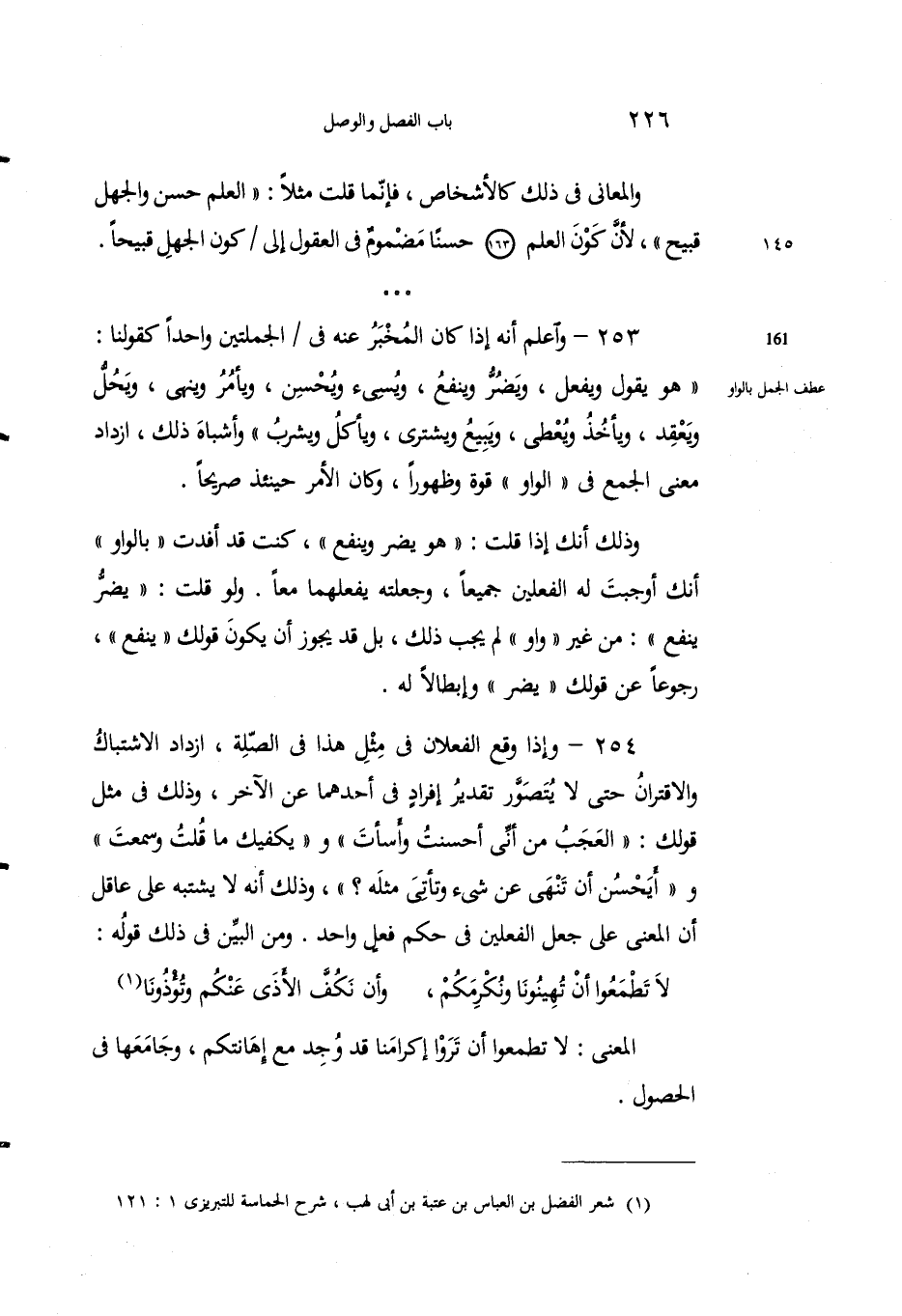 1 شعر الفضل بن العباس بن عتبة بن أبي لهب، شرح الحماسة للتبريزي 1: 121.