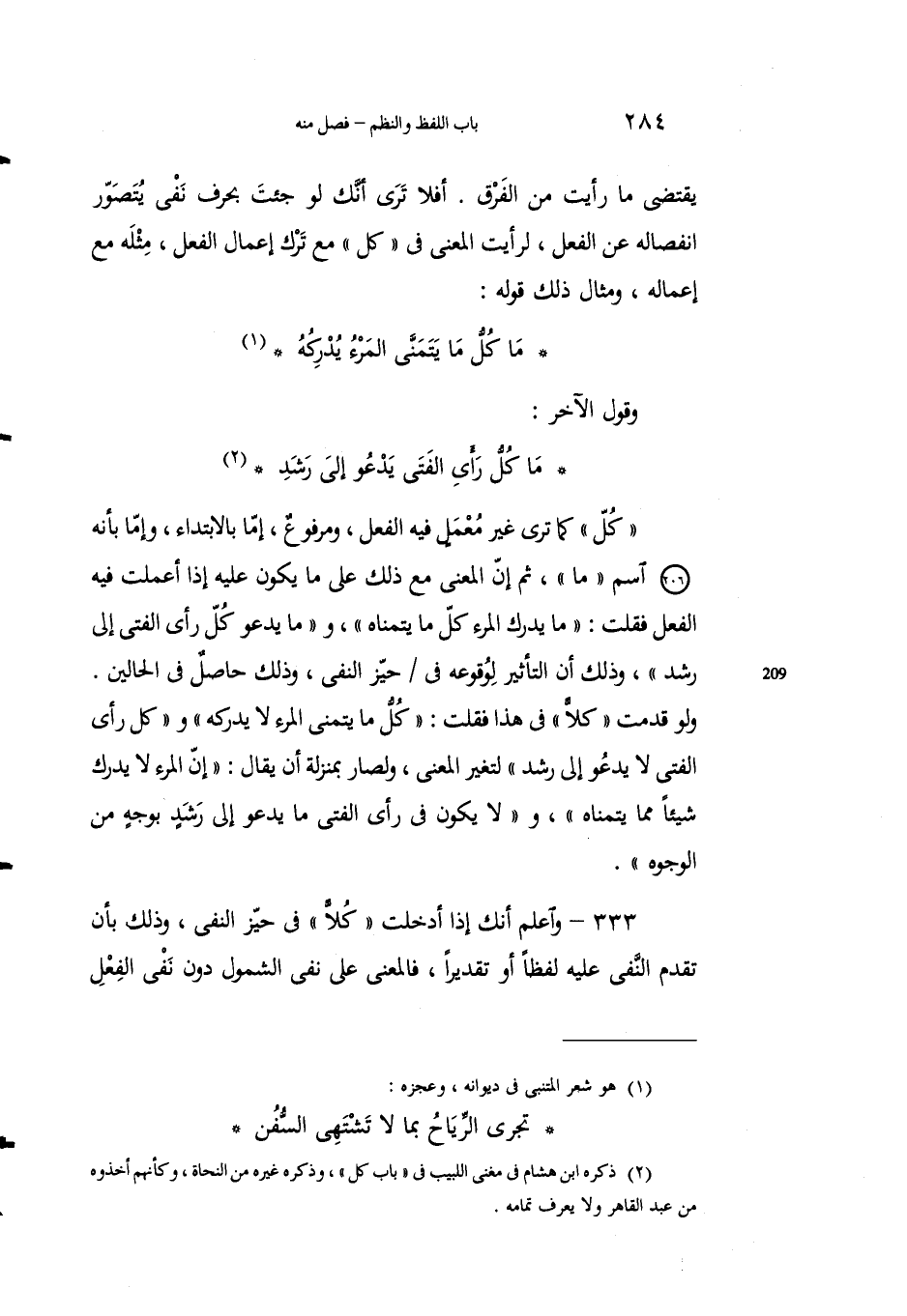 2 ذكره ابن هشام في مغني اللبيب في "باب كل"، وذكره غيره من النحاة، وكأنهم أخذوه، من عبد القاهر ولا يعرف تمامه.