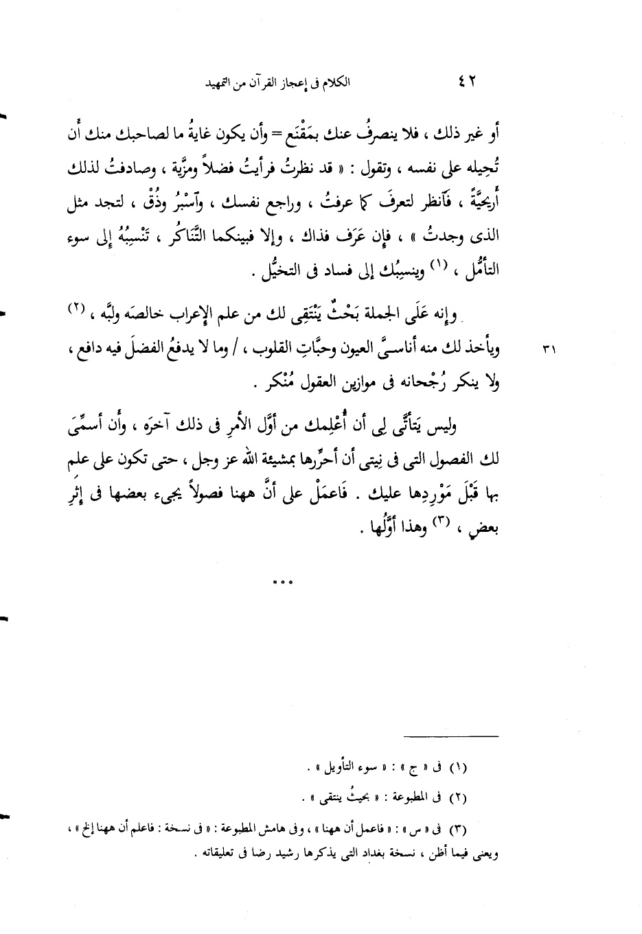 3 في "س": "فاعمل أن ههنا"، وفي هامش المطبوعة: في نسخة: فاعلم أن ههنا إلخ"، ويعني فيما أظن، نسخة بغداد التي يذكرها رشيد رضا في تعليقاته.