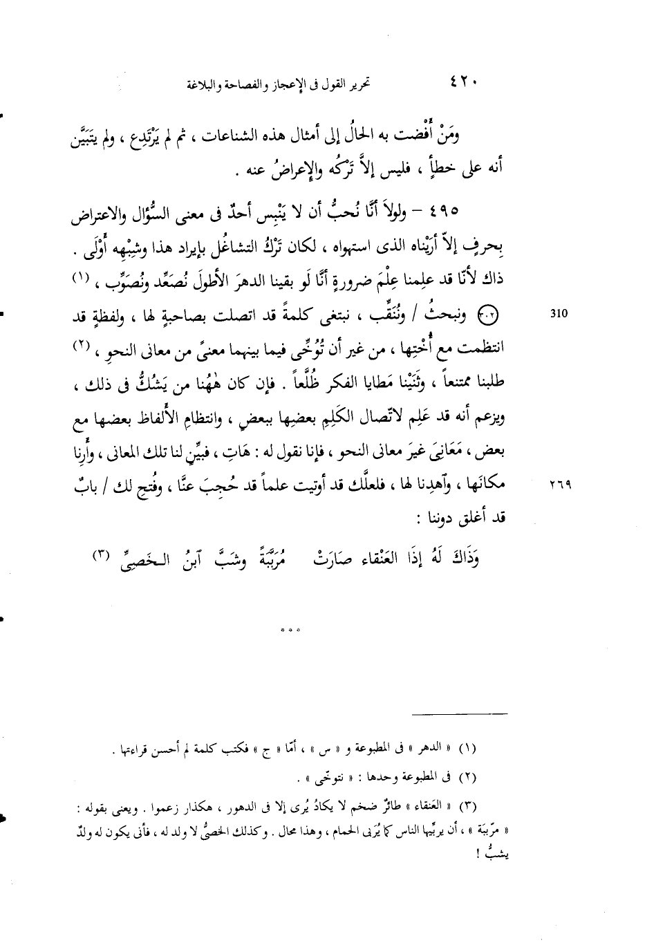 495 - ولولا أنا نحنب أن ينبس أحد في معنى السؤال والاعتراض بحروف إلاَّ أَريناه الذي استَهْواه، لكان تَرْكُ التشاغلُ بإيرادِ هذا وشبَههِ أَوْلى.