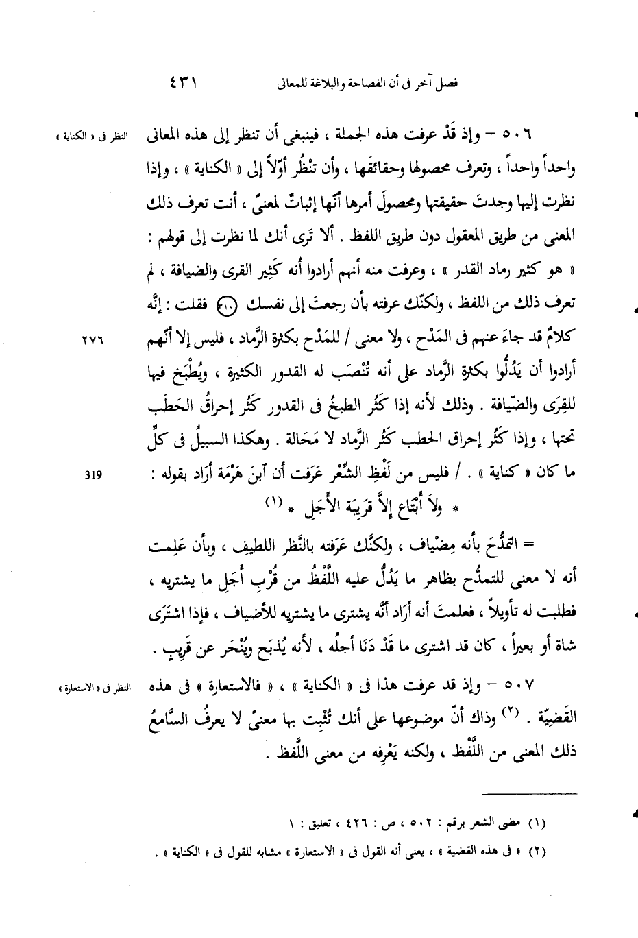 2 "في هذه القضية"، يعني أنه القول في "الاستعارة" مشابه للقول في "الكناية".